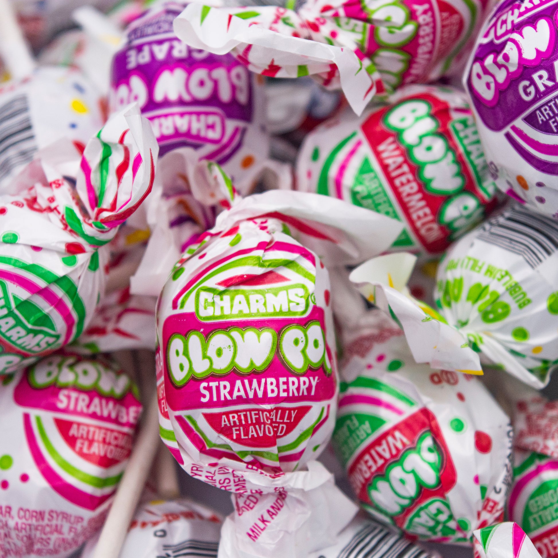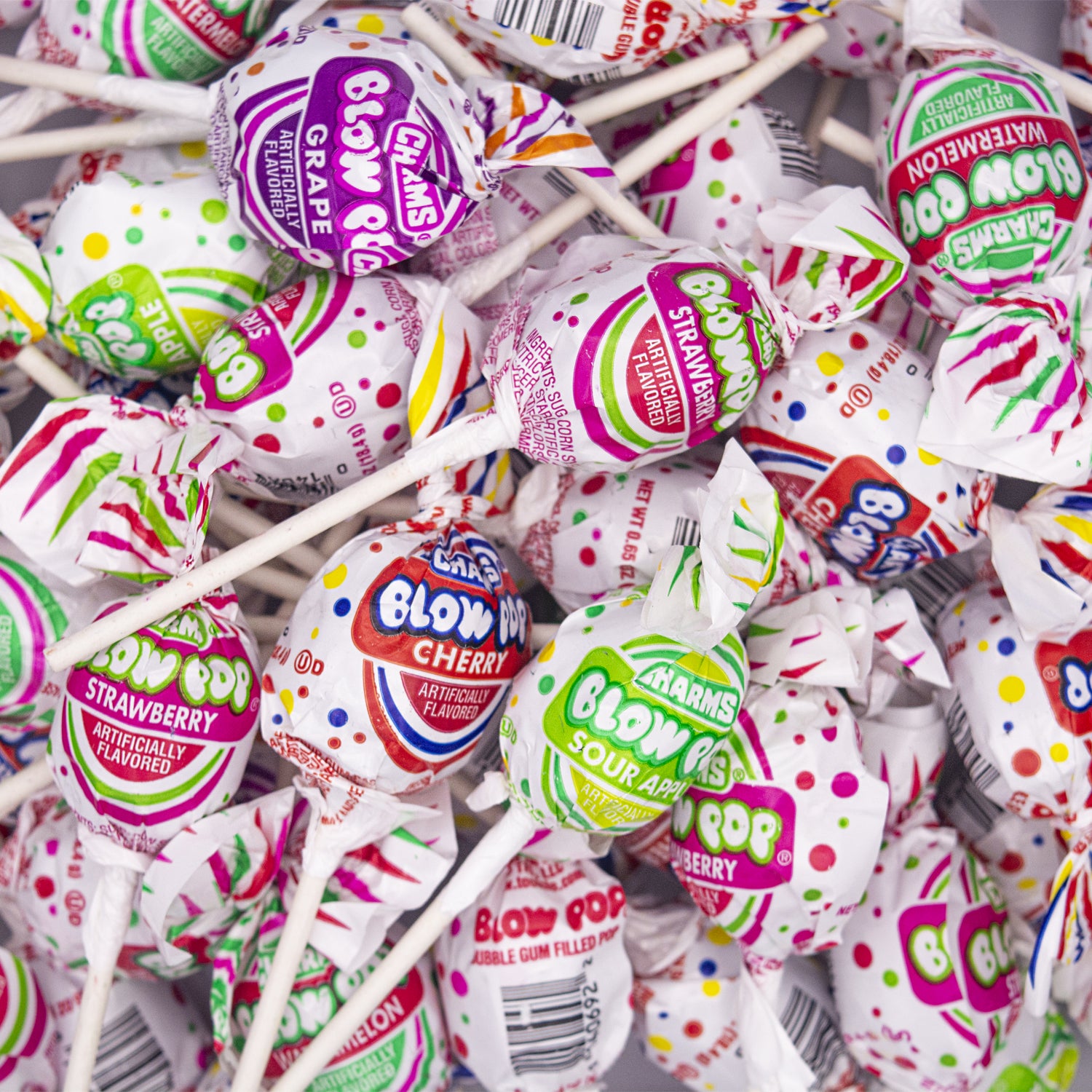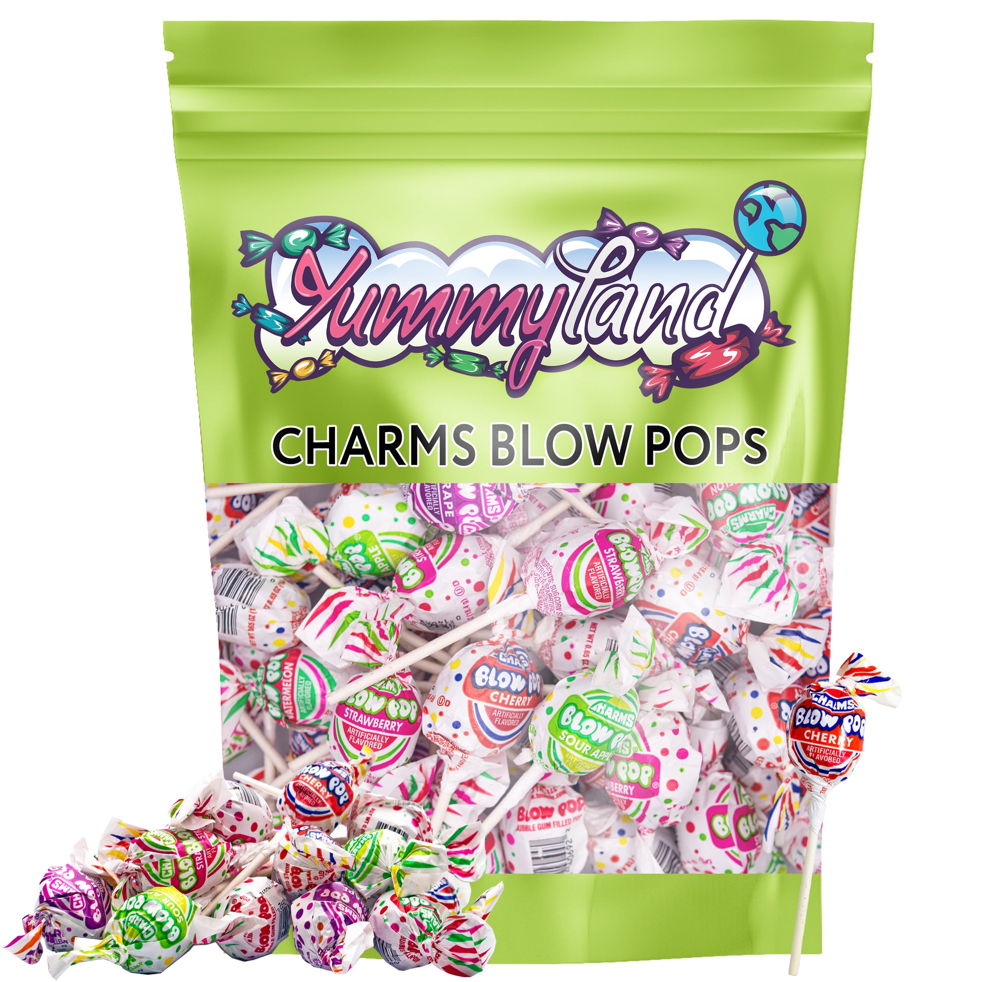 - đ Assorted Hard Candy Blow Pops are great for any occasion: Birthday Parties, Holidays, Sweet Tables, Kids Parties, Weddings, Graduation Parties, Baby Showers, Movie & Game Nights, Candy Bowls, and Office Treats. Charms Blow pops bulk is well packaged in premium quality, our resealable YUMMYLAND stand-up bags with a clear window