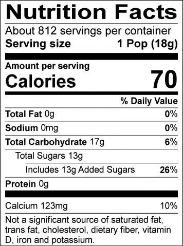 Ingredients: Sugar, Corn Syrup, Gum Base, Citric Acid, Starch, Artificial Flavors, Glycerin, Artificial Colors (including FD&C Red 40, FD&C Blue 1), Turmeric Coloring, BHT added as a preservative. Milk and soy may be present.