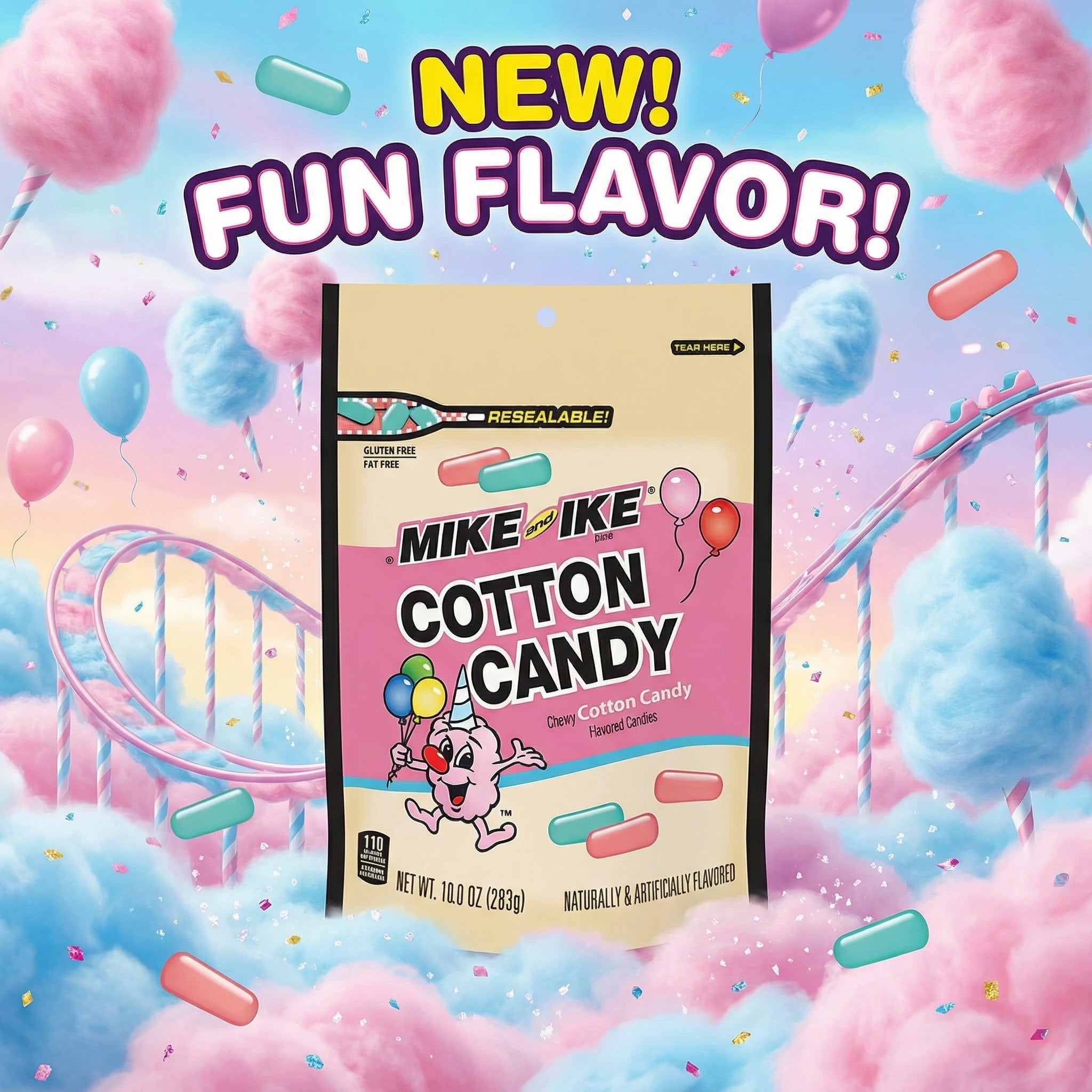Limited Edition Flavor – Special release Cotton Candy Mike and Ikes, available only for a short time.