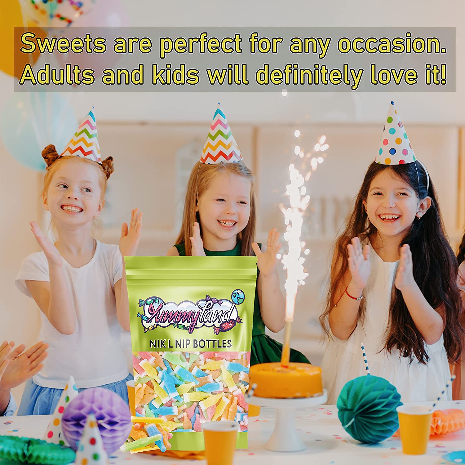 Our range of candies is suitable forany occasion: Birthday Parties, Christmas Day, Sweet Tables, Kids Parties, Weddings, Graduation Parties, Baby Showers, Movie & Game Nights, Candy Bowls, and Office Treats. Our sweets will decorate your table. Just choose what you want.