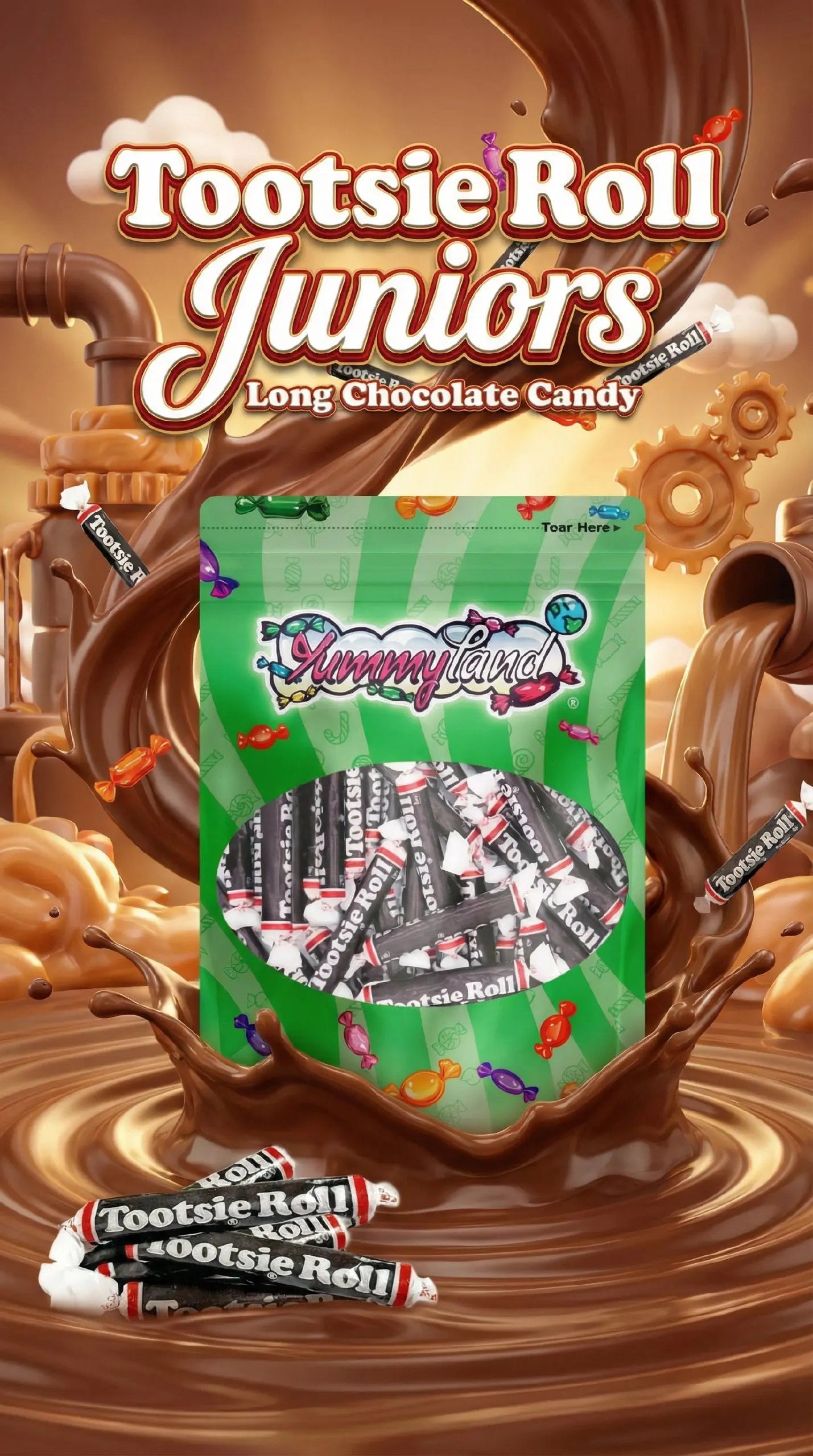 - Tootsie Chocolate Candy is great for any occasion: Birthday Parties, Holidays, Sweet Tables, Kids Parties, Weddings, Graduation Parties, Baby Showers, Movie & Game Nights, Candy Bowls, and Office Treats. Tootsie Roll Long Chocolate is well packaged in premium quality, our resealable YUMMYLAND stand-up bags with a clear window.